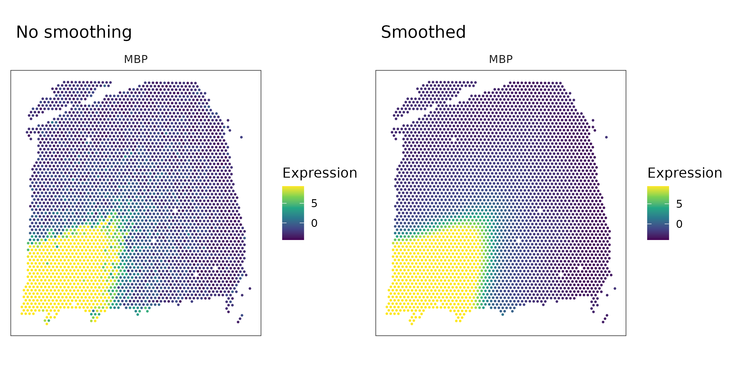 The figure below shows a comparison of the MBP gene expression before and after preprocessing: